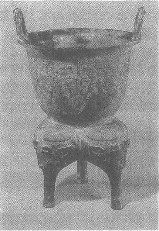 西周。炊器,礼器。高43.9厘米,口径27.6厘米。台北故宫博物院藏。侈口,长腹微敛,绳纹对耳立于口沿之上,腹内有箅,其下为鬲形足。上部饰饕餮纹、垂三角雷纹,下部为箅纹。甗,是古代的炊器,盛行于商周时期。上部是透底的甑,下部是鬲,中间有一孔的箅。此器为西周前期的遗物。