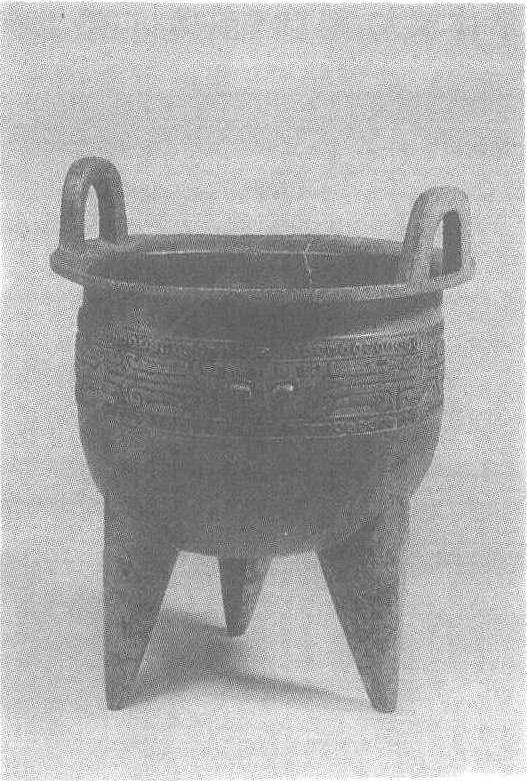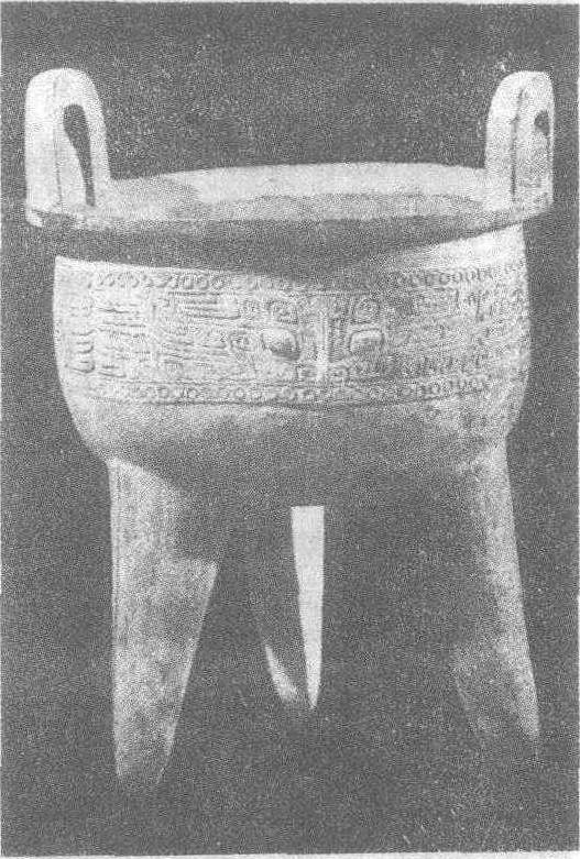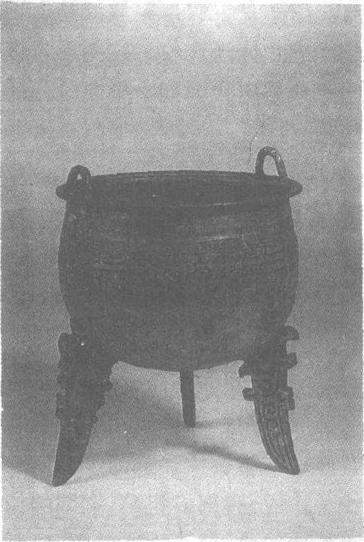 饕餮纹铜鼎商。炊器、礼器。通高86厘米,口径61厘米。1978年辽宁喀喇沁左翼蒙古族自治县小波汰沟窖藏出土。辽宁省博物馆藏。此鼎圆形,深腹,折沿,三柱形足,上粗下细,足中空与腹相连。曲槽形唇耳。腹、足上的铸造范线清晰可辨。颈饰均匀排列六组卷云式饕餮纹,足上的扉棱增加了装饰效果。
