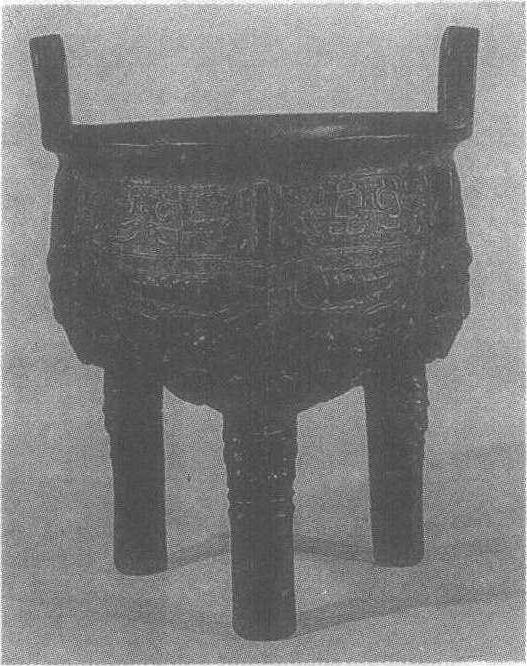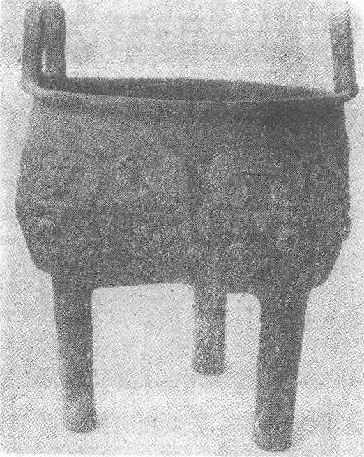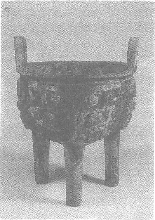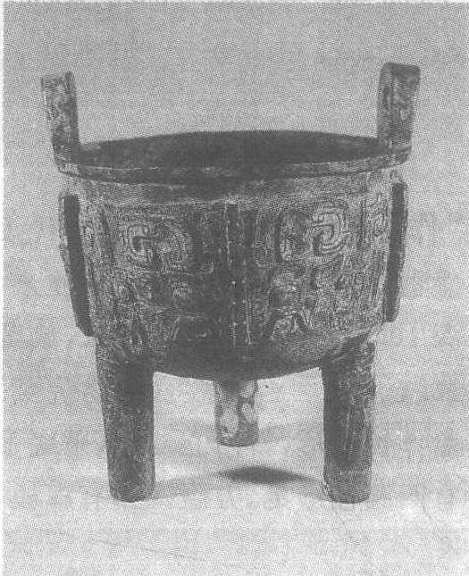饕餮纹铜鼎商。炊器,礼器。通高28厘米,口径17厘米,耳高4厘米,腹深15厘米。1975年山西省长治市博物馆在潞城县废铜中拣选。长治市博物馆藏。此鼎敞口,折沿,两耳直立口沿,圆腹,锥形足空心到底。颈部饰弦纹二道,足部饰饕餮纹,花纹粗疏,间有扉棱,下饰弦纹二道。底部有烟炱痕。器已残。形制与花纹都具有商代二里岗期的铜器特点,时代应属商代中期。 饕餮纹铜鼎商。炊器,礼器。通高86厘米,口径61厘米。1978年辽宁省喀喇沁左翼蒙古族自治县小波汰沟窖藏坑出土。辽宁省博物馆藏。此鼎双立耳为曲槽形,口沿外折,深腹,三柱足中空,与腹相通。口沿下饰六组饕餮纹,足上部亦饰饕餮纹。中心的棱脊,不仅掩饰合范痕迹,更增加了装饰气氛。此器形体高大,造型稳重,具有商代中期青铜器特点。