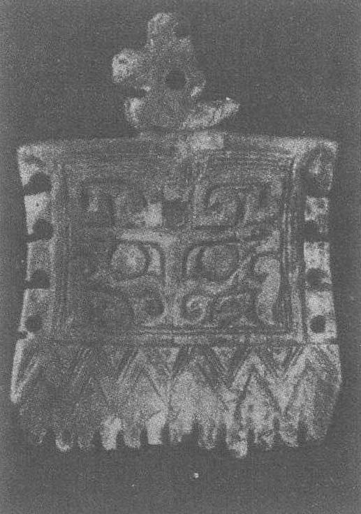 | 释义 | 饕餮纹骨梳商。残高5.5厘米,宽4.1厘米,厚0.3厘米。1976年出土于河南省安阳小屯殷墟妇好墓。呈方形,两边为对称的锯齿形菲棱,梳身中间刻巨目钩眉的饕餮纹,身与齿间饰数重三角形波折纹,计有14枚梳齿,可惜已残断。梳身上边正中圆雕一伏鸟,高冠大喙,砧孔为眼。冠后部也砧一圆孔,疑为饰佩带用。此梳雕刻精细,造型古朴,纹饰风格与同期的青铜器一致。