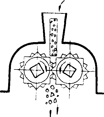 双辊式饼粕碎裂机 双辊式饼粕碎裂机 利用锯切和挤压的原理将豆饼破碎。它的主要工作部件是一对齿辊(图),齿辊上装有许多片星形齿盘,左右两辊上的齿盘彼此交错排列,使左辊的齿尖可伸入右辊的齿盘之间。两辊作相对方向转动,转速比约1:1.5,可产生锯切作用。工作时,整块豆饼从顶部入口处喂入,受到齿辊的锯切和挤压作用,碎裂成粒径为5~20毫米的碎块。每小时可碎裂5~20吨饼粕,配套动力为10~20千瓦。 锤式饼粕碎裂机 利用锤击的原理把饼粕打碎。其结构与锤片式饲料粉碎机(见饲料粉碎机)相似,但各部件的强度增大很多。在碎裂室中央有一个装有许多锤片的转子,室的顶部镶有齿板,底部有孔眼筛。工作时,大块饼粕从喂料口进入后,受到锤片的不断打击和齿板的搓擦作用而粉碎成细粒,穿过筛孔落出。锤式饼粕碎裂机的特点是大块饼粕能直接在同一机内粉碎到所要求的产品细度,使操作工序简化。产品的细度与所用的筛孔大小有关,筛板孔径为8毫米时,细度为2.3毫米;4毫米时为0.5~1.5毫米。每小时可加工1~3吨饼粕,配套动力为7.5~18千瓦。 |