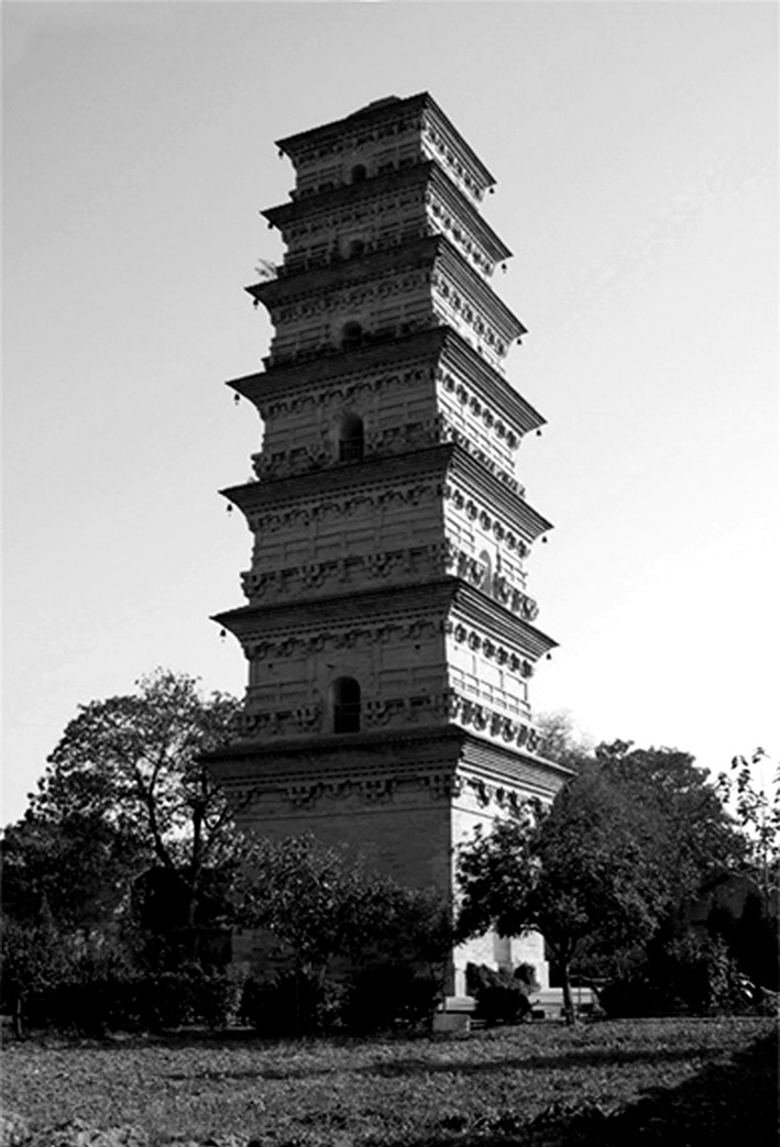 香积寺塔唐代佛塔。原名“光明寺”或“温国寺”。位于陕西省长安县神禾原西端的香积寺内。著名高僧善导法师在此弘扬净土宗,680年圆寂,其弟子怀恽为纪念大师而建此塔。塔周220步,13级。塔还用于观星象测风雨,并根据塔影角度测定时辰。现该塔已残裂为11级,高33米。 |