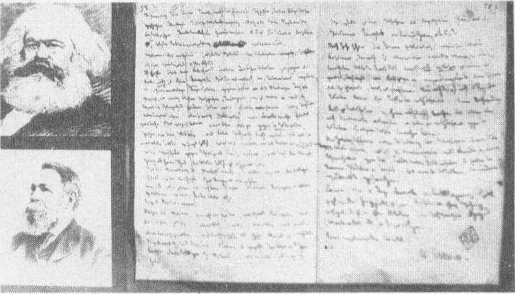 马克思致恩格斯的信函 1848年3月马克思被比利时当局驱逐出境,4月返回德国,参加德国革命。6月创办《新莱茵报》,成为当时唯一代表无产阶级观点的报纸。德国革命失败后流亡伦敦,并长期在这里定居。1850-1852年写了《1848至1850年法兰西阶级斗争》、《路易·波拿巴的雾月18日》等著作,提出了无产阶级革命必须打碎资产阶级国家机器等重要结论。 50年代至60年代, 马克思完成了马克思主义经济学体系的创建工作。1859年撰写了《政治经济学批判》一书, 系统地阐述了价值理论。1867年, 发表了《资本论》第一卷,揭示了资本剥削的秘密在于占有工人的剩余价值。 50年代末开始, 欧洲各国工人运动高涨, 马克思立即投入了这场运动。1864年9月28日,国际工人协会 (即第一国际) 在伦敦成立, 马克思被选入领导机构, 并担任德国通讯书记, 同时为第一国际起草了《成立宣言》、《临时章程》等重要文件。在“国际”存在时期, 马克思积极参与了 “国际” 的各种活动, 在理论和斗争策略上与工联主义、蒲鲁东主义、巴枯宁主义等错误思潮进行了斗争, 使科学社会主义理论得到了广泛的传播。巴黎公社时期, 马克思满腔热情地给予支持, 通过各种渠道与公社保持联系, 宣传公社的意义。公社失败后, 在很短的时间内写了 《法兰西内战》一书, 歌颂了巴黎公社的伟大壮举, 总结了巴黎公社的经验。1876年,第一国际在马克思的建议下宣布解散,但马克思继续关注着各国工人运动的发展。德国社会民主党准备于1875年5月与拉萨尔在哥达代表大会上合并, 并在原则上作了很大让步, 马克思抱病写了 《哥达纲领批判》 一书, 指出了德国党的错误。1879年针对“苏黎世三人团”的言论, 与恩格斯写了著名的《通告信》,予以批判。1883年3月14日,马克思在伦敦逝世, 被安葬在伦敦海格特公墓。 马克思1818—1883Makesi,karl Marx,世界无产阶级的伟大导师和领袖,科学共产主义理论的创始人。1818年5月5日出生于德国莱茵省特利尔城的中产阶级犹太家庭,父亲是一个具有理性主义、宗教自由主义和政治自由主义思想的律师,这使得马克思从小就受到了资产阶级人道主义和民主主义思想的熏陶。1835年,马克思以优异的成绩毕业于特利尔中学。毕业论文《青年在选择职业时的考虑》充分表现出他要为人类幸福而献身的高尚情操。1835年10月进入波恩大学法律系。一年以后,转入柏林大学法律系。这期间他系统地研究了黑格尔哲学,并加入了青年黑格尔派。1841年大学毕业时获得哲学博士学位,其博士论文《德谟克利特的自然哲学和伊壁鸠鲁的自然哲学的差别》虽然是在努力探索黑格尔以后的哲学发展方向,但仍未超出黑格尔唯心主义的水平。1842年4月马克思开始为《莱茵报》撰稿。同年10月任该报主编。1843年3月被迫辞去主编职务。同年与燕妮结婚,后移居巴黎。1844年初创办《德法年鉴》,并发表了《论犹太人问题》、《〈黑格尔哲学批判〉导言》、《1844年经济学哲学手稿》,这时的马克思已经从唯心主义者转变为唯物主义者,从革命民主主义者转变为共产主义者。他指出无产阶级是唯一能消灭剥削的阶级。认为批判的武器不能代替武器的批判。同年8月,马克思与恩格斯会面,彼此都发现两人在理论观点、研究方向等方面完全一致。从此,他们为世界无产阶级的解放事业并肩战斗了终身。马克思与恩格斯合写的第一部著作是《神圣家族》,提出了人民群众是历史的创造者,无产阶级是资本主义制度的掘墓人的思想。次年,两人又合著了《德意志意识形态》,批判了费尔巴哈的唯心史观,阐述了社会存在决定社会意识,生产力和生产关系辩证运动的规律,以及人类社会的发展是一个自然历史过程等原理,对唯物史观进行了完整的论述。1846年,马克思和恩格斯在布鲁塞尔建立了共产主义通讯委员会,对形形色色的社会主义理论进行了批判。1847年,马克思写了《哲学的贫困》,全面批判了蒲鲁东主义。同年加入正义者同盟,并将其改组为共产主义者同盟。次年2月,马克思与恩格斯合著的科学共产主义的第一个纲领性文献《共产党宣言》发表,这标志着马克思主义的诞生。1848年欧洲革命期间,马克思恩格斯一起回到德国,亲自参加并领导这场革命,在科伦创办了《新莱茵报》。革命失败后,于1849年5月被逐。1850年写了《1848年至1850年的法兰西阶级斗争》、《路易·波拿巴的雾月十八日》等重要著作,全面总结了革命的经验教训,发展了马克思主义的国家学说,得出了无产阶级必须打碎旧的国家机器,建立无产阶级专政的结论,并阐述了不断革命的思想。1859年发表了《政治经济学批判》,为论述剩余价值理论奠定了基础。1864年建立国际工人协会(第一国际),同各种社会主义流派进行了坚决的斗争,确立了马克思主义在国际工人运动中的领导地位。1867年出版了《资本论》第1卷,创立了剩余价值学说,揭示了资本主义的内在矛盾及发展规律,论证了资本主义的必然灭亡,社会主义的必然胜利。1871年巴黎公社革命爆发,马克思给予了极大的支持,公社失败后,他又写了《法兰西内战》,总结了巴黎公社的经验教训,发展了马克思主义关于无产阶级专政的基本原理。在19世纪70至80年代,马克思把主要精力放在继续写作《资本论》第2、第3卷上,同时关注着国际共产主义运动的发展。《哥达纲领批判》就是为了揭露和批判各
