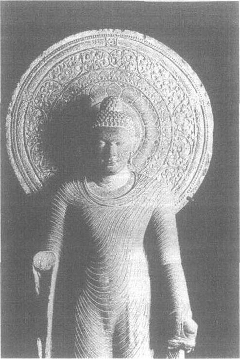 马图拉佛立像 笈多王朝时期的雕刻继承了印度民族雕刻的传统,吸收了外来文化的有益影响,创造了符合印度人民审美理想的古典艺术典范。 笈多王朝造像总的基调是和谐、平衡、宁静。造像风格大体有两种: 一是萨尔纳特式,一是马图拉式。 这件佛陀像是典型的马图拉式。马图拉地处印度北部,与犍陀罗较近,故受其影响。但它具有更多印度本土风韵,体现了这 一时期的审美理想。佛陀为立像,身着通肩式大领袈裟,轻薄透体,衣纹流畅,若碧波荡漾。头发为典型螺旋式,顶髻较小,背光繁缛华丽,反衬出佛的庄严、静穆。佛头微低,颐腮圆满,眉上挑,眼下视,端庄安详,哲理明净,将庄严的睿智与理想的深情融为 一身,给人一种恬静、典雅、和谐之感。 笈多王朝马图拉式造像对中国早期佛像有 一定影响。 |