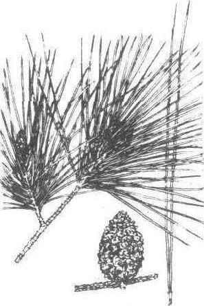 马尾松 马尾松地方重要经济林木。俗名松树、枞树、青松、山松、刺松等。为产松脂的主要树种。主要分布在湘西雪峰山、湘西北武陵山、湘南五岭、湘东罗霄山脉等区域。湖南人工栽培马尾松历史悠久。《汉书·贾山传》载: 秦“为驰道于天下,东穷燕齐,南极吴楚……道广五十步,三丈而树……树以青松。”为湖南传统出口商品,畅销五大洲60多个国家和地区。 马尾松松科松亚科松属常绿乔木。甘肃见于康南梅子园和文县碧口。亚热带树种,喜温暖湿润气候,喜光,较耐干旱瘠薄,不耐水涝,不耐盐碱。其木材纹理直,结构粗,富松脂,硬度中,不耐腐。供建筑、板料、家具、包装箱、胶合板、造纸和木纤维工业原料,经防腐后供枕木、电杆、矿柱等用。树干供采松脂,提取松焦油,花粉入药。甘肃省级保护树种。 马尾松松科常绿大乔木。又称山松、青松。高达30~40m,胸径1m。树皮纵裂,褐红色,具树脂。叶2针1束,长12~20cm。雌雄同株,雄花密集着生在去年生枝上端。雌花生新梢先端。球果第2年秋季成熟。种子长卵形,具翅。长1.5cm。花期3月上旬。马尾松原产中国,分布淮河、秦岭以南省区市。马尾松是亚热带地区适生树种。冬季-10°C低温,明显冻害。木材建筑和加工板材等,易受白蚁危害。长江流域5~10月,采割树脂,树脂含松节油15%~25%。松针蒸油得油率0.2%,松果得油率0.1%~0.2%。树脂、松针油等用于香皂、化妆品、医药、化工各方面。 |