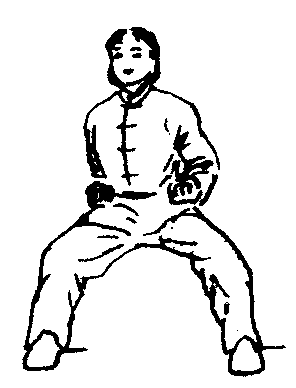 | 释义 | 马步桩桩功之一。主要练习腿部的力量,使下肢稳固。练习时两脚平行开立,比肩略宽,脚尖正对前方,两腿屈膝下蹲,大腿接近水平,膝部不超过脚尖,全脚着地,重心在两腿之间,挺胸、塌腰,两眼平视前方,气沉丹田,两手抱拳于腰间或两臂环抱于胸前,掌心向外。(图2—4—16)练习时要注意循序渐进,时间逐渐延长,一般1~2分钟即可。