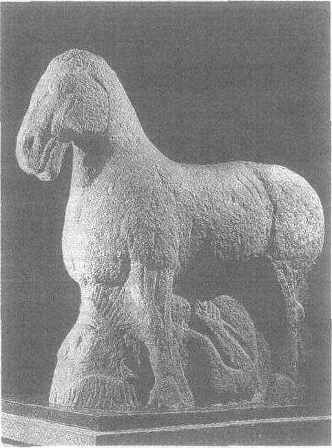 | 释义 | 马踏匈奴西汉石雕。是霍去病陵墓石雕群中的主体雕刻,高1.68米,长1.9米。战马巍然肃立,三腿直树,右前蹄高举,作踩踏状。其腹下是一个手持弓箭、仰卧在地作垂死挣扎的匈奴战败者,填充了战马腹下的空缺之处。战马表现出既雄宏漠然而又警惕的神情,与足下武夫挣扎的狼狈情态形成鲜明的对比。粗壮而坚实的马腿,犹如四根巨大的石柱,与马的身躯浑然一体,构成永久性的柱石建筑感。以战马象征西汉政权的强大声威,象征霍去病的赫赫战功,显示出雕刻者运用象征艺术手法之巧妙和艺术构思设计的别具匠心。作品洗练概括,朴拙浑成,是霍去病墓石刻中的杰作。 马踏匈奴《马踏匈奴》是霍去病墓前石雕群中的一件,高1.68米,长1.90米,为汉代陵墓雕刻最优秀的代表作。