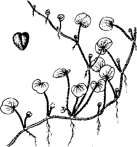 马蹄金马蹄金,又名肝炎草。旋花科,二年生伏地喜荫小草本。匍匐性叶小,全缘叶柄部成一缺刻,形似马蹄,夏秋季开白色小花。药性平,味甘辛。清热利湿,退黄。主治黄疸型传染性肝炎,其用法是: 药用全草。常用0.3—0.5两,水煎服。 马蹄金汉代,1983年大连市新金县花儿山乡张店村出土。共两件,形制相同,出土时两件对合在一起。底部近圆形,中间空心,周壁从底向上内收,壁前高向后逐渐低,呈马蹄形,壁后左侧有一椭圆形孔,含金量均为98%。其中一件底部直径5.6×5.9厘米,侧面刻划有××××川符号,底部中心凿有“上”字圆印,重量为259.45克。另一件底部直径5.6×6.1厘米,侧面刻划有××××符号,底部中心亦凿有“上”字圆印,重量为260.45克。发行于汉武帝太始二年(公元前95年),专供宫廷赏赐,馈赠等而不用于流通的上币马蹄金。现藏旅顺博物馆。 马蹄金creeping dichondraDichondra repens For-ster,又称黄胆草。旋花科,马蹄金属。多年生匍匐性小草本。喜阴湿环境,适生于阴湿山坡、林边、田野、草坪及住宅背阴处。分布于中国长江以南各省。匍匐茎被灰色柔毛,贴生地面,节节生根。单叶,互生,叶圆形或肾形,先端钝圆或具微凹,叶缘全缘,叶基心形。花腋生,花萼 5裂,花冠钟形,黄色;雄蕊5枚,着生于花冠裂片间缺口处;子房2室。蒴果。种子2粒。全草入药,有清热利湿、解毒消肿的作用,又是农田和草坪上常见的害草之一。 |
