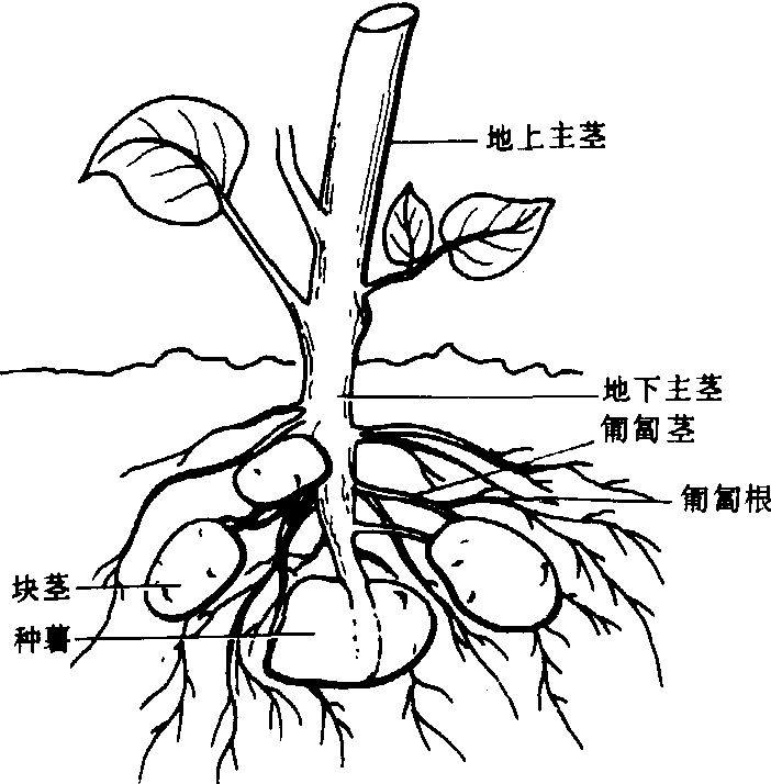 马铃薯 马铃薯按皮色分有白皮、黄皮、红皮和紫皮等品种;按薯块颜色分为黄肉种和白肉种;按形状分为圆形、椭圆、长筒和卵形等品种。在栽培上常依块茎成熟期分为早熟、中熟和晚熟三种,从出苗至块茎成熟的天数分别为50~70天、80~90天、100天以上。按块茎休眠期的长短又可分为无休眠期、休眠期短(一个月左右)和休眠期长(三个月以上)三种。20世纪60年代前古老的农家品种因病毒病危害,退化严重,逐渐为新引进及新育成的品种所代替。主要优良品种有:早熟品种丰收白、克新4号、郑薯2号、白头翁等;中熟品种克新1号、米拉(Mira)、乌盟601、疫不加(Epoka)等;晚熟品种沙杂15号、克新3号、高原4号、虎头等。早熟品种主要分布在长江中、下游及华北平原地区,中、晚熟品种主要分布在东北、西北及西南山区。 生长发育和块茎形成 用种子繁殖,苗期长达70天以上,不但费工费时,而且后代性状严重分离,影响品质和产量。生产上都用块茎做种,苗期短、发棵快,结薯早、产量稳定。从块茎(种薯)萌芽至新生块茎收获,经发芽期、幼苗期、发棵期和结薯期。 发芽期 从块茎的幼芽萌动至出苗。完全通过休眠的种薯,发芽始温为4℃,适温12~18℃。适温下芽生长快而茁壮,芽眼根发生早、数量多。若种薯处于休眠状态,需人工打破休眠后才能发芽。种薯所含水分可供发芽需要,如土壤水分不足,影响出苗。土壤通气状况对发芽影响较大,土壤疏松,芽生长迅速;土壤板结,根系呼吸作用弱,吸水活动受阻,芽生长缓慢。发芽期一般春季为25~35天,秋季10~20天。 幼苗期 从出苗至主茎完成一个叶序或第8叶长成(即“团棵”),历时15~20天。此期除有茎叶及初生根生长外,还有匍匐茎和匍匐根发生,同时伴随匍匐茎尖端开始膨大,若温度较低、光照较强、氮肥充足、土壤湿度适宜(占土壤田间持水量的50~60%)和通气状况良好,则利于发棵壮棵;若温度较高,日照较长,则有利于茎叶生长和匍匐茎发生。 发棵期 从团棵至主茎顶叶展平,历时25~30天。早熟品种以第一花序开花、晚熟品种以第二花序开花为结束形态的标志,此期根系继续扩展,茎叶生长加快,块茎膨大至3厘米左右,其干重已达植株总干重的50%以上。因此发棵期是建立强大同化系统和转向块茎旺盛生长的重要时期。它是从发棵为中心转到以结薯为中心的转折阶段,匍匐茎顶芽停止生长,尖端变粗,块茎开始形成。但不是所有的匍匐茎都能形成块茎,20世纪60年代从环境因子方面研究发现:低温和短日照形成块茎多、产量高,高温和短日照不形成块茎。经体外施用激素或生长抑制剂等类物质发现,激素借助促进淀粉合成酶的活性和抑制淀粉水解酶的活性而刺激块茎形成,赤霉素的作用则相反,抑制块茎形成。在转折阶段,须处理好制造养分(根、茎、叶的同化作用)、消耗养分(新叶、新根的生长)和积累养分(块茎膨大)三者的相互关系。在生产中,若追肥过晚、氮肥过多,高温、多雨、光线弱、日照长等因素都会促使养分大量消耗于茎叶生长,甚至引起徒长,影响块茎膨大,推迟进入结薯期; 相反则会限制茎叶生长,早结薯、早熟而影响产量。因此,在转折阶段以前,应使植株处于温暖长日照条件,土壤水分保持在田间持水量的70~80%,以使发棵迅速,生长良好; 在转折阶段以后,应处于冷凉短日照条件之下,土壤水分逐渐减为田间持水量的60%,以利养分向块茎运输。 结薯期 从主茎顶叶展平到茎叶变黄。此期块茎迅速膨大。由于马铃薯是南美低纬度高山植物,所以冷凉短日照和昼夜温差大的条件有利于光合产物的积累和向块茎输送。光合产物积累最多的温度范围: 强光下为14~24.5℃,弱光下为13.5~19℃。光合强度在日长12小时比在日长19小时提高50%,糖分向块茎输送速度提高5倍,但输送量随夜温的增高而减少。块茎膨大需要充分和均匀的土壤水分,结薯前、中期土壤水分宜保持在田间持水量的80~85%,结薯后期逐渐降至50~60%,使块茎周皮老化以利收获和贮藏。结薯前期对缺水最敏感,可导致减产; 结薯期土壤水分供给不匀,温度时高时低,则引起块茎畸形生长。 块茎的休眠 块茎休眠是在其开始形成的同时发生; 收获后,在适合发芽的环境中仍保持不发芽的状态,称生理性休眠,即自然休眠。休眠期的长短,关系到块茎的耐藏性和播种后能否及时出苗。休眠的发生和解除原因很复杂,一般认为块茎成熟时,周皮细胞木栓化程度增加,阻碍氧气进入块茎造成缺氧而进入休眠; 也有人认为块茎中存在抑制发芽的物质脱落酸和促进发芽的赤霉类物质,块茎的休眠和发芽受控于这两种物质的平衡状态。处于休眠状态或尚未完全解除休眠的种薯,不经处理就用来播种,则出苗迟而不齐。生产上一般采用温光处理解除种薯休眠,即在播种前30~50天,将种薯先置于20℃的暗室中,使薯内酶的活性增强,养分分解加速,促进发芽,再置于光照下,使芽茁壮。 栽培技术 包括播种、田间管理、中耕培土等。播种 马铃薯根系扩展和块茎生长需要氧气的程度高于一般作物,宜于富含有机质的砂土或砂壤土栽培。栽培季节受霜期和夏季热雨的限制,无霜期100天左右的地区春播秋收;无霜期200天左右且夏季高温多雨的地区一般春、秋两季栽培,春末至秋初高温多雨的地区在秋末春初栽培,目的是使结薯期处在凉爽的月份。播种前进行深耕,结合增施有机肥,使土层深厚、疏松、肥沃。随即耙耱整平,以待播种。未