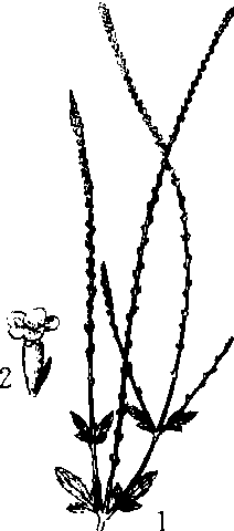 | 释义 | 马鞭草European verbenaVerbenaofficinalis L.,又称龙牙草、风颈草。马鞭草科,马鞭草属。多年生草本。原产热带美洲,在中国各地有栽培,亦常逸为野生。常生于山脚、路旁或村边荒地等处。株高可达1 m,茎多分枝,4棱形,棱及节上有刚毛。单叶,对生,叶片卵形至长圆状形,基生叶的叶缘常有粗锯齿及缺刻,茎生叶常为3深裂,裂片呈不规则羽状分裂或具锯齿,叶两面均被粗毛。穗状花序,顶生或腋生;每朵花有一苞片;花萼筒状,先端5裂,宿存;花冠淡紫色,略呈三唇形,雄蕊4枚,2长2短;子房4室,每室1粒胚珠,成熟后成为4个小坚果。喜阴、喜旱、怕涝。用种子繁殖,春季或秋季插秧,夏季采割全草。入药能活血祛痰、利尿,能治疟、血吸虫病、丝虫病,外用可治跌打损伤、疔疮肿毒。