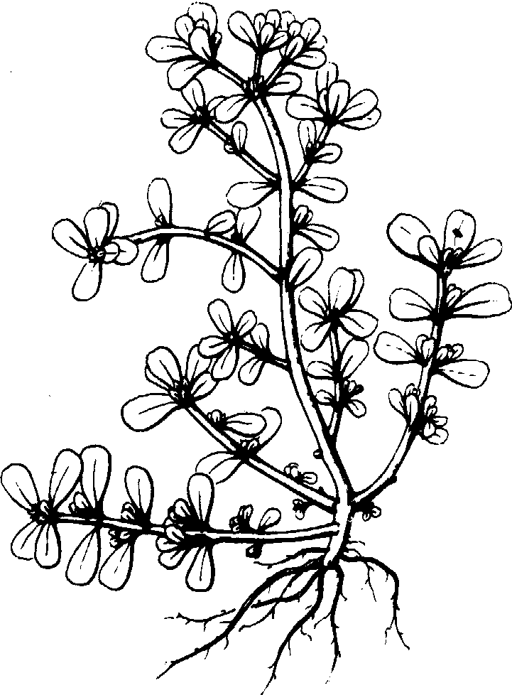 | 释义 | 马齿苋purslane马齿苋科 (Portulaca-ceae)马齿苋属中的野生种,一年生草本植物。学名Por-tulaca oleraca L.,别名长命菜、五行草、马蛇子菜、瓜子菜。每100克鲜茎叶中含水分92克、蛋白质2.3克左右、脂肪0.5克、碳水化合物3克、钙85毫克、磷56毫克、铁1.5毫克、胡萝卜素2.23毫克及维生素C23毫克等。多以嫩茎叶作汤、炒食或烫后凉拌。全株入药有解毒、消炎及利尿的功效。亦可治蚜虫。广布于世界温带和热带。中国除高寒地区外均有分布。喜向阳肥沃土壤,耐旱耐涝,常见于庭园、菜地及路旁。茎直立、斜生或平卧地上,肉质,光滑无茸毛。叶倒卵形或匙形。先端钝,长1.5~3厘米,叶柄极短。花两性,簇生于顶端,苞片4~5,花瓣5,黄色。雄蕊11枚或更多,雌蕊1,花柱顶端5~6裂。夏季开花,蒴果,成熟后自然开盖散出种子。种子甚小,扁圆形,黑色,表面有细点。