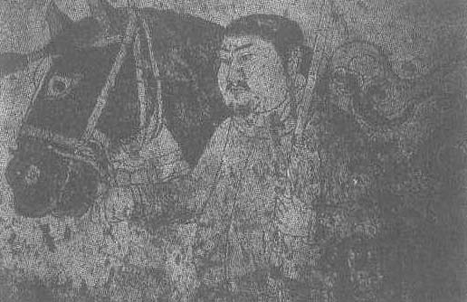 | 释义 | 驭者引马图壁画辽。驭者高137厘米。内蒙古自治区哲里木盟奈曼旗青龙山辽陈国公主驸马合葬墓墓道西壁壁画。驭者平头短须,浓眉大眼,脸型扁平,颧骨突出,相貌颇具特点。左手执鞭,斜于肩上。右手牵马缰。马为黑色,门鬃束结,颈系红缨,鞍鞯上饰云纹。马高大英俊,装备俱全,据推测可能为公主坐骑。此图画工精致,比例准确,线条干脆利落,是一幅优秀之作。