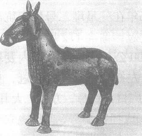 驹尊 传说周穆王驾八骏巡行天下,并逐一为八骏命名。周人好马,驹尊可为物证。驹,造型匀称 ,比例适中,比较讲究大的结构,虽略显板滞,然不失生气。驹为小马,平和站立,两条前腿并立,后腿略微叉开,双耳耸立,目视前方,炯炯有神。驹背上有一方盖,想必既是入口又是出口,并不见得实用。驹身腰部两侧刻有涡纹,前胸刻有铭文,通体朴素无饰,当为青铜器中少见者。 中国青铜工艺发展至西周中期,开始出现一新的趋势,造型由疑重、庄严转为轻松活泼,纹饰由繁缛转为简朴; 以动物造型的雕塑性的鸟兽器逐渐减少,与此同时,此类器物的实用性亦相应减弱。这些特点,或多或少地在驹尊这件青铜器上得到某种印证。青铜器上的这些变化,透露出王权削弱和 “礼崩乐坏” 的趋势,预示着 一个新的时代行将到来。 |