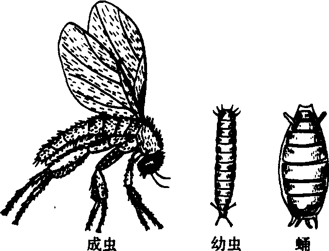 | 释义 | 驼背蝇humpbacked fly以蜜蜂幼虫体液为食的一种内寄生蝇。别名隆肉蝇。学名Phora incrassata Meigen。双翅目,蚤蝇科。成虫体呈黑色,个体较小,体长仅3~4毫米。胸部大而隆起,足发达,行动敏捷。通常由巢门潜入蜂箱,在未封盖的幼虫房内产卵。卵暗红色,经3小时后,孵化为幼虫,穿透蜜蜂幼虫体壁进入体内,吸吮体液,经六七天后离开蜜蜂尸体,咬破巢房盖,爬出巢房并潜入箱底脏物中或土壤中化蛹,经过12天后由蛹羽化为成虫(见图)。宜饲养强群,保持蜂多于脾或蜂脾相称,以抵御驼背蝇潜入蜂群;保持蜂箱内清洁,经常清除蜂箱底蜡渣、杂物等并集中烧毁;经常切割蜜房的封盖,并搜集化蜡。对于严重的受害群,可用烟叶或杀螨煎烟剂进行药物防治。将烟叶或熏烟剂装入喷烟器内,点燃后,从蜂箱门口向箱内喷烟3~4次,3~5分钟后,收集落下的驼背蝇集中烧毁。