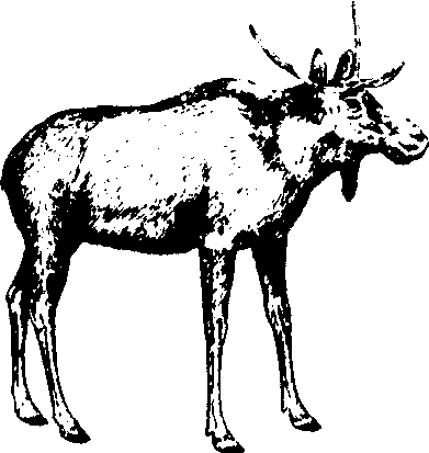 驼鹿 驼鹿Moose现存鹿科中最大型的种类。分布于纽芬兰、新斯科舍和新不伦瑞克,西至不列颠哥伦比亚,北至阿拉斯加。雌鹿通常重350千克,最重可达490千克;雄鹿通常重约400千克,最重可达600千克。体黑色,腿长以利于在深厚积雪中行走,背部隆起,颜面长,上唇伸出,耳大,胸部具下垂的皮肉。欧洲称为麋鹿,遍布于独联体国家和斯堪的纳维亚。雄性具有扁平掌状的长角,每年4月长出,茸皮一直保留到8月、9月上旬,9月~10月以角争斗,进入繁殖季节,12月至翌年2月脱落。雌鹿在繁殖季节鸣叫,猎人常模仿其叫声吸引雄鹿。雌鹿需18岁~20岁方能成熟,孕期长达16个月~18个月。5月下旬至6月上旬生产,每胎常产两仔。幼仔呈鲜红到浅红褐色无花斑。母鹿有保护幼仔免遭狼群和猎人伤害的本能。栖息于加拿大各落叶针叶林区,现已扩展到林地边界以外。冬天,栖于积雪较少的森林;夏天,则取食桦、杨、柳的嫩枝嫩叶,常常涉水下湖取食沉水植物。森林火灾后,进入新生的次生林地,会践踏幼树,取食生长嫩尖而破坏树木。群体数量受到狼群、狩猎和幼仔冬季饥饿死亡率的控制。 驼鹿偶蹄目鹿科最大体型草食动物。重达500千克。吻宽大,肩部隆起似驼峰。雄鹿角向两侧伸长,分叉而短粗。全身黑棕色,具鬃毛,每胎1仔。我国仅发现于阿尔泰山喀纳斯自然保护区,为保护动物。 |