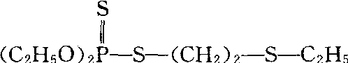 | 释义 | 乙拌磷disulfoton见甲拌磷。 乙拌磷disulfoton又称敌死通、M74、Dithiosystox。有机磷杀虫、杀螨剂。化学名称:O,O-二乙基-S-(2-乙硫基乙基)二硫代磷酸酯。化学结构式如下。纯品为无色液体,密度1.144在 20°/4℃,沸 点 为62℃(1. 33 Pa),20℃时蒸气压为7.2×10-5mPa。大鼠急性口服LD50为2~10 mg/kg,经皮LD50为6~20mg/kg,对鱼毒性中等虹鳟(96 h)LC50为3.0 mg/kg,属剧毒。对害虫害螨具有强烈的内吸和触杀作用。可以用来防治棉蚜、棉叶螨及蓟马等。