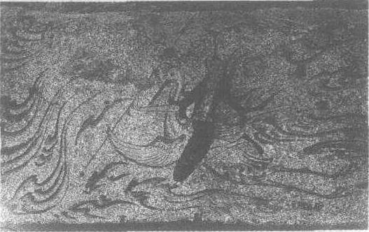 | 释义 | 驾鹤仙人壁画高句丽(公元6世纪)。纵50厘米,横90厘米。吉林省集安县四神墓藻井西南第一重抹角石上壁画。仙人梳高髻,髻上戴饰物。身着绛色对襟羽衣,裤仅及膝,右手持长矛,侧身回首坐于仙鹤之上。仙鹤双腿后平伸,振翅飞翔,四周环以流云。仙人神态超脱,“仙气”横溢,在仙鹤的背负下畅游云间。此图绘画水平较高,笔调轻松,线条流畅,其风格与所绘内容十分吻合,且有极强的动感,是高句丽壁画作品中的优秀之作。