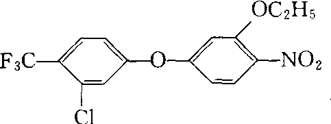 性能 原药有效成分含量为70~80%,黄色至红褐色,半固体,密度 1.49(25℃),沸点250~300℃,70%的原药熔点为59~78℃,80%的原药熔点为68~83℃,闪点大于93.33℃(闭式),25℃时蒸气压为0.27×10-3帕,在常温下几乎不溶于水(25℃时在水中的溶解度小于1毫克/升),在丙酮、乙醇、二甲苯中的溶解度大于50%,在异丙叉丙酮、二氯乙烯中溶解度大于40%,容易光解。乙氧氟草醚属低毒,原药大鼠急性经口LD50大于5000毫克/千克,兔急性经皮LD50大于10000毫克/千克。大鼠急性吸入LC50大于213毫克/升,对皮肤有轻度刺激作用,对眼睛有中度刺激作用,但在短期内即可消失,在试验剂量内对动物未见致畸、致突变、致癌作用。在三代繁殖试验和迟发性神经毒性试验中未见异常。对鱼类及某些水生生物高毒,96小时蓝鳃鱼LC50为0.2毫克/升,虹鳟鱼LC50为0.26毫克/升,鲇鱼LC50为0.4毫克/升,河蚶为3.20毫克/升。对蜜蜂毒性较低,急性经口LD50为25.381微克/只。对鸟类低毒,鹌鹑LD50大于5000毫克/千克; 野鸭用100毫克/千克喂养未见有毒害作用。 作用机制 芽前或早期芽后处理,主要通过胚芽鞘、中胚轴进入植物体内,根部吸收较少。在植物体内引起植物毒性的确切机制还不十分清楚,已经知道氧化氟分子在线粒体内引起、产生有毒的氧基原子团,不饱和细胞膜类脂物的过氧化反应,引起细胞内含物外渗。在有光的情况下,发挥杀草作用。在水稻移栽田施用,均系利用稻苗与杂草在生育期的差异,稻苗5叶、20厘米高,而杂草初萌发,移栽稻苗后4~ 6天施药时稗草0.5~ 1.5叶期,其他杂草尚未出土,一般对水稻安全,但在药液与稻株表面接触时,产生褐斑或脚叶早枯,这一症状并不影响稻苗生长发育,很快恢复正常。在水田施用后,由于水溶性极低,移动性较小,吸附于0~ 3厘米表土层中,不易垂直向下移动。被土壤微生物分解成二氧化碳,在土壤中半衰期30天左右。 应用 适用于水稻、甘蔗、大豆、花生、棉花、森林苗圃、葡萄、果树、玉米等作物地防除一年生阔叶杂草、莎草科及禾本科杂草。水稻移栽田适用于秧龄30天以上,苗高20厘米以上的一季中稻和双季晚稻移栽后4~6天,稗草芽期至1.5叶期,每公顷用有效成分35~ 54克,药土法均匀撒施,稻田水层3~ 5厘米,保持5~7天。可与苄嘧磺隆、丁草胺等除草剂各减半混用,扩大杀草谱,提高水稻安全性。陆稻、大豆、花生、甘蔗、棉花、针叶苗圃、某些蔬菜等旱地作物掌握在播后苗前,每公顷用有效成分108~180克,杂草萌发出土前施药。葡萄、果树、茶、桑园、幼林抚育,使用低压喷雾器进行喷雾土壤处理。 乙氧氟草醚oxyfluorfen又称果尔。二苯醚类触杀性除草剂。化学名称:2-氯-1-(3-乙氧基-4-硝基苯氧基)-4-(三氟甲基)苯。化学结构式如左。原药黄色至红褐色半固体,密度1.49 (25℃),沸点250~300℃,熔点68~83℃,闪点>93.33℃(闭式),25℃时蒸气压为266.6×10-6Pa。几乎不溶于水,易溶于丙酮、乙醇、二甲苯、二氯乙烯,易光解。在有光的情况下发挥杀草作用。主要通过胚芽鞘、中胚轴进入植物体内,抑制幼芽生长而致死。适于水稻田使用,也可用于大豆、玉米、棉花、蔬菜田及果园。防除稗草、牛毛草、鸭舌草、野荸荠、异型莎草、节节菜、狗尾草、藜、苋、蓼等一年生单、双子叶杂草。对人畜低毒,大鼠急性口服LD50>5000 mg/kg,兔急性经皮LD50>5 000 mg/kg,对皮肤有轻微刺激。对鱼及水生动物高毒,对鸟类低毒。水稻田使用易在叶片上形成枯斑,尤其在施后灌溉水淹及心叶部位,能造成严重药害。