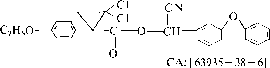 | 释义 | 乙氰菊酯cycloprothrin对鱼类等水生生物低毒可用于水田的合成拟除虫菊酯杀虫剂。商品名和其他名称有赛乐收、杀螟菊酯、稻虫菊酯、Cyclosal、Phencyclate等。有四个光学异构体。化学结构式: