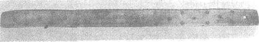 骨尺后凉。通长24.2厘米,宽2厘米,厚0.2厘米。1975年甘肃省敦煌文化路4号墓出土。甘肃省敦煌文物研究所藏。骨尺正面用两圆圈表示寸,五寸处刻有三个圆圈,一端有一圆形穿孔,是系绳之用。敦煌文物研究所还藏有一件与此形制、长度相近的骨尺。