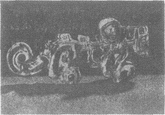 商。长5.2厘米,高2.2厘米,厚1厘米。1976年出土于河南省安阳市殷墟妇好墓。从虎首前端的圆形断骨看,它可能为某种器物的柄。虎昂首竖耳,双目圆睁,塌腰卷尾,四肢前屈作行走状。造型稚拙,神态逼真。其通体刻饰回纹,并在耳、眼、鼻及身体各部位镶嵌绿松石,装饰十分讲究。