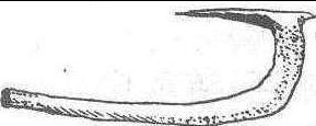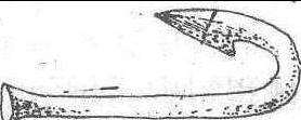 捕捞工具。1958年出土于黑龙江省宁安县牛场早期铁器时代遗址,现藏黑龙江省博物馆。通长4.3厘米,直径0.4厘米。动物肋骨磨制,形制接近现代金属鱼钩。尾部无孔,钩部为180°弧形,钩尖内侧及下边均有倒钩,一级文物。
