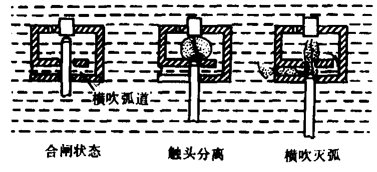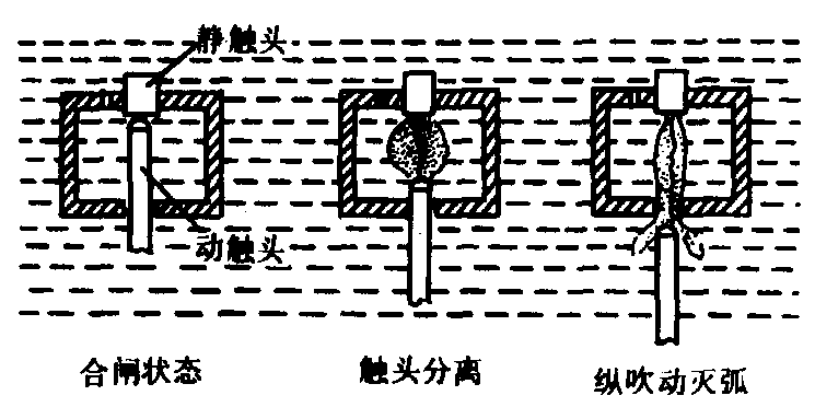 图2 简单油纵吹灭弧室及其灭弧过程示意