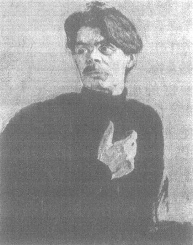 高尔基像 1892年首次发表作品短篇小说《马卡尔·楚德拉》,开始走上创作之路。1892~1899年是高尔基创作的第一阶段,有浪漫主义和现实主义两种创作倾向。《伊泽吉尔老婆子》、《鹰之歌》和《切尔卡什》是代表作。三卷本的 《特写与短篇小说集》的问世,使他成为全欧闻名的作家。1901年发表了散文诗 《海燕之歌》。 19世纪90年代末和20世纪初是高尔基创作的新时期,开始中、长篇小说和剧本创作,作品与历史转折时期的俄国现实紧密相连,触及社会生活而广阔而深入。此间作品有小说 《福马·高尔杰耶夫》、《三人》以及 《底层》 等一系列剧本。