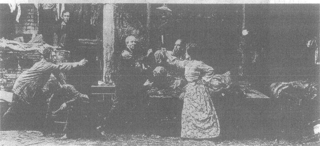 《底层》剧照 1903年革命后,高尔基受沙皇政府通缉,被迫旅居国外。国外侨居期间,他创作有不少收获,《母亲》是其中之一。 1913年回到俄国,他广泛开展文化组织工作,同时坚持文学创作,完成自传三部曲前两部《童年》、《在人间》。十月革命期间,他十分关心革命,曾发表了《不合时宜的思想》等文章。而后因病出国就医,再次长期侨居国外。中间完成了 《我的大学》、《阿尔达莫诺夫家的事业》和 《克里姆 ·萨姆金的一生》等作品。 1937年高尔基回到祖国,从事苏维埃文化建设领导工作。1936年6月18日,这位前苏联无产阶级文学的奠基人心脏停止了跳动。 高尔基苏联作家。提出“美学就是未来的伦理学”。倡导社会主义现实主义的创作方法。参见“文学”中的“高尔基”。 高尔基1868—1936Максим Горький苏联俄罗斯作家。原名阿列克塞·马克西莫维奇·彼什科夫(Алексей Максимович Пещков)。生于木匠家庭。童年和青少年时代是在旧社会的底层度过的。1884年,离开故乡,来到喀山。在繁重劳动之余,勤奋自学。早年不平凡的经历在他的自传体小说三部曲《童年》、《在人间》、《我的大学》中作了记录。1892年,发表处女作《马卡尔·楚德拉》,作为浪漫主义作家进入文坛。早期著名的短篇小说有《伊则吉尔老婆子》、《鹰之歌》。前者谴责了腊拉的极端个人主义,后者抨击了小市民习气。20世纪初,俄国工人运动蓬勃发展,他以表现时代精神、歌颂革命理想、洋溢着革命激情的战斗诗篇《海燕》迎接了20世纪初的无产阶级革命风暴,并开始创作剧本。《小市民》描写了小市民思想与无产阶级思想的冲突,《底层》描写了一群被抛到生活底层的流浪汉的悲惨遭遇,揭露了资本主义社会的罪恶。积极参加1905年革命,同年加入布尔什维克党。1906年在美国写出代表作《母亲》第一部,并完成剧本《敌人》。1905年革命失败后,发表过宣传“造神论”的小说。还写了具有浓厚的浪漫主义色彩和强烈的革命精神的《意大利童话》,在十月革命前后尖锐复杂的阶级斗争中,曾与布尔什维克党发生了分歧。1921年,他接受列宁的劝告,出国治病。二三十年代,写了一系列揭露资产阶级知识分子的作品,代表作有长篇小说《阿尔达莫诺夫家的事业》。一生还写过30多篇回忆录,其中《列宁》刻画了列宁生动而完美的形象。政论文和文学论文也是他给无产阶级文学留下的一份珍贵的遗产。十月革命前写的《个人的毁灭》、《俄国文学史》等,以历史唯物主义观点系统阐述了欧洲和俄国文学的规律。在苏维埃时代,又写了许多文学论文,对马克思主义文艺理论的发展和培养青年作家作出了重大贡献。通过他的创作,无产阶级的革命斗争在世界文学史上第一次得到了生动的反映,在文学领域宣告了无产阶级新纪元的诞生,是世界文学中伟大的无产阶级作家,苏联社会主义革命文学的奠基人。 高尔基1868—1936苏联文学家,孤儿出身,8岁开始做工,早年经历甚广,在空余时间学习和练习写作。他的早期作品具浪漫戏剧风格,所描写的人物生动,大多是他所同情的流浪者和下层人。《福玛·高尔捷耶夫》是一部描写新兴商人阶级的作品,是他从浪漫主义向现实主义过渡的标志。在契柯夫的鼓励下,他创作了其著名剧作《底层》。以后的社会小说和戏剧则转向社会主义现实主义。他的代表作《母亲》描述一位罢工工人的母亲从一个无知的单纯妇女成为共产主义信仰者的过程,被视为社会主义现实主义作品的典范。他的自传体三部曲《童年》、《在人间》、《我的大学》也属其最佳作品之列。高尔基一生积极从事革命文化的宣传,以他为先导的社会主义现实主义成为了苏联文学艺术的旗帜。 高尔基高尔基 (1868—1936),俄罗斯作家、社会活动家。原名阿列克塞·马克西莫维奇·彼什科夫。社会主义现实主义文学的奠基人,文学批评家和政治家,前苏联作家协会的发起人和作协理事会的第一任主席。出生于木匠家庭,童年时代和少年时代在旧社会的底层度过的。1884年,离开故乡,前往喀山,劳动之余,勤奋自学。幼年不平凡的经历在他的自传体小说三部曲 《童年》、《在人间》、《我的大学》中作了记录。 高尔基1868~1936前苏联作家。原名阿列克赛·马克西莫维奇·彼什科夫。生于下诺夫哥罗德市 (今高尔基市) 一木工家庭。父早逝。11岁起外出谋生,做过学徒、帮厨、脚夫等零工。20岁后两次漫游俄国。1892年后发表短篇小说《马卡尔·楚德拉》、《伊则吉尔老婆子》和《鹰之歌》,多取材于民间传说,具有积极浪漫主义色彩。而《切尔卡什》、《马尔华》 以及 《二十六个和一个》,则取材于底层人民生活,有现实主义倾向。19世纪90年代末,艺术上日趋成熟,发表了许多成功的作品,其中长篇小说《福玛·高尔杰耶夫》 (1899) 描写同名主人公对资产阶级的背叛及个人反抗的悲剧,塑造了大商人马雅金的典型; 剧本《底层》(1902)通过城市流浪者生活的描写来揭露资本主义罪恶,批判了 “勿以暴力抗恶” 的托尔斯泰主义,著名散文诗《海燕之歌》 (1901) 则成了预示俄国第一次民主革命的战斗号角。在1905年革命中首次会见列宁,翌年,最重要的长篇小说《母亲》 问世,推动了俄国工人群众的革命斗争,得到列宁的称赞。随后的斯托雷平反动时期,他同各种颓废、反动思潮进行斗争,写了许多政