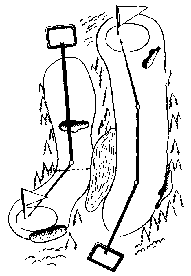 长距离球洞,是以3杆上果岭,而中距离球洞,则是2杆上果岭。 长距离球洞的标准杆是5杆,虽然球道较长,但比较好打;中距离球洞的标准杆是4杆,但球道高低弯曲,富有变化,容易使人打入障碍区。 |
