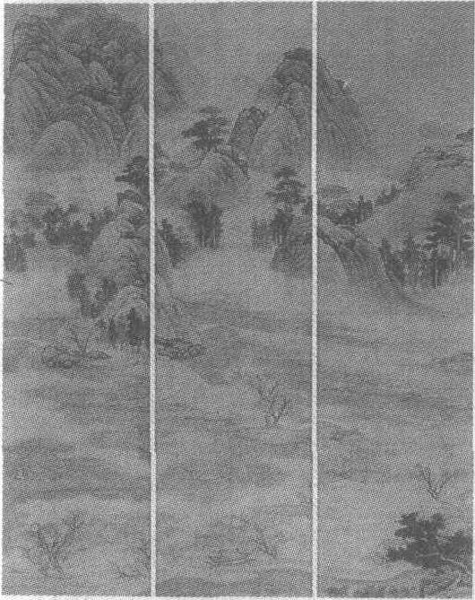 | 释义 | 高岑春景山水联屏清。高岑绘。绢本设色。各联纵214厘米,横55厘米。山东省烟台市博物馆藏。高岑见《高岑谷口幽居图页》条目。此联屏现存八联,其余已散失。作者以潇洒自如的笔墨绘通景山水,现存的八联中有六联能够衔接。图中秀山峻岭连绵不绝,山峦岗阜渐次推出,远山淡然,近峰为云霞所托。山中飞瀑垂悬,树木成林,秀塔高耸于山巅,亭台楼阁,庙宇阙门散布山间,红墙碧瓦气宇不凡。群山下临盘曲断续而来的大河,河面上舟揖往还,一些游客正在观景。几座拱桥横跨水面,游人散步其上。大河两岸的桃树粉红一片,柳椿新枝似漫漫青纱,一派春意浓郁的景象。牧童放牧其间,河流的另岸是整洁威武的城墙,作者借此通过城中人的眼光去观察郊外春日的秀媚。高岑以皴法绘山,写出其质感与稳重。细致之处,如城墙的砖石、柔软的嫩柳,有些细如毫发,均绘制得严谨而生动。设色淡雅宜人,充分体现了作者的审美情趣,是其代表性作品。