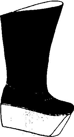 又称“厚底靴”。高帮、方头、白厚底,靴面一般为黑色缎面,少为布面。为剧中生、净文武官员穿用。