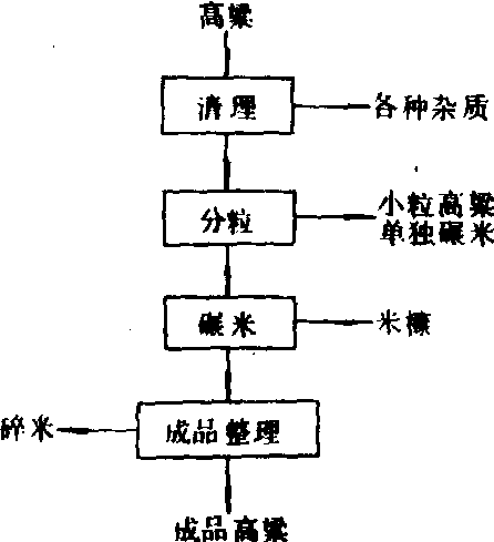 高粱制米的工艺流程图 清理 采用筛选、风选、去石和磁选等方法清除各种杂质(见稻谷加工)。 分粒 大粒高粱结构坚实,皮层较薄,容易去皮。小粒高粱胚乳比较松脆,与皮层结合较紧密,大都属于未成熟的粉质高粱,去皮困难,容易产生碎米。高粱分粒有两种工艺:一是在清理过程中进行分粒;另一种是先经过1~2道碾米机碾制后再进行分粒。后一种分粒工艺称为粗碾后分粒,其优点是有利于提高分粒效率。高粱分粒设备有溜筛、振动筛和平面回转筛等。 碾米 常用高粱碾米机有三节砂辊碾米机、立式砂臼碾米机和横式双辊碾米机等。高粱的碾米过程一般分为粗碾和精碾,并在每道碾米机之后,设有选糠和除壳设备,以利于提高碾米效率。粗碾为碾米过程中的前一阶段,如果用六道碾米机碾米时,前三道为粗碾,主要是将高粱全部颖壳和部分皮层碾去。在粗碾过程中,因带皮层的种仁表面光滑,籽粒坚实,能承受较强的碾米作用力,所以粗碾应碾去高粱皮层的60%。精碾是碾米过程的后一阶段,目的是在尽量避免产生碎米的原则下,碾去剩下的部分皮层,达到成品高粱米的规定精度。当加工低水分高粱,特别是经过烘干晾晒的高粱时,其皮层与胚乳结合紧密,胚乳结构松脆,容易产生碎米,可以采用高粱表皮着水碾米,称为湿法碾米。高粱着水大都采用喷雾着水,使着水均匀,着水量应根据高粱的原始水分和高粱工艺性质确定,一般为2%左右,对于原始水分低的角质高粱,加水量可多些。着水后的高粱应送到搅拌器内进行搅拌、混合,使喷到水的高粱与未喷到水的高粱拌匀,达到均匀着水的目的。搅拌设备有螺旋输送机,在室温较低的条件下,还采用夹套保温螺旋输送机,以利于水分向高粱皮层渗透,并防止高粱表面结露。高粱经搅拌后,可引入润谷仓使水分均匀地渗透入皮层,以利于提高碾米效果,润谷时间应由着水量和高粱工艺性质决定,一般为40~60秒钟。经润谷后的高粱应尽快送往碾米机进行碾米,避免水分进一步向胚乳内部渗透,降低籽粒强度,容易产生碎米。同时还应防止碾米机产生糊机现象,造成碾米机堵塞、停机。 成品整理 高粱在碾制过程中,虽经多道选糠、除壳,但由于高粱皮糠较粘,仍然会有部分米糠粘附在米粒表面,并连同颖壳混在米粒间,不但影响成品质量,而且对贮存不利,所以必须进行成品整理。通常是先用擦米机擦去米粒表面粘附的米糠,除去部分混在米粒中的糠粞;然后用吸风分离器吸出米糠和残留的颖壳;再用溜筛或成品分级筛分离糠粞和碎米。在成品打包以前,还需经过磁选设备,除去磁性金属杂质。高粱除了制米外,还可制粉,将清理过的高粱经过磨粉机和粉料筛理设备,进行研磨、筛选,可制成不同等级的高粱粉。 副产品的利用 高粱加工中得到的皮壳,可用来提取鞣酸,然后用作饲料。碎米可作为制糖、酿酒、制醋和生产配合饲料的原料。 高粱加工sorghum processing经清理、去壳和碾米等工序,将高粱制成高粱米的生产过程。高粱的皮层内含有鞣酸,皮色越深,鞣酸含量越高。鞣酸味涩,影响食欲,食后能使肠液分泌减少,妨碍人体消化、吸收,所以高粱必须去皮后才能食用。高粱经清理分粒后,可直接送往碾米机进行碾米。碾米设备有三节砂辊碾米机、立式砂臼砂米机和横式双辊碾米机。高粱可加工成米,也可加工成高粱和𥻗高粱粉。 除食用外,还可用于制淀粉、制糖、酿酒、制酒和丁醇等产品。高粱经碾米后得到的米糠可提取单宁供药用。 |