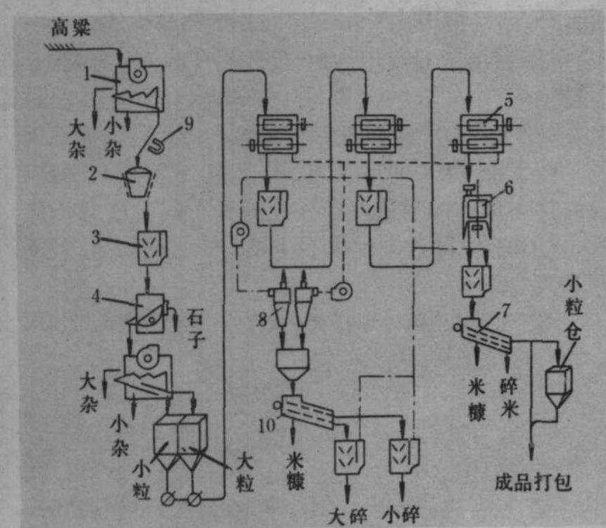 | 释义 | 高粱加工机械sorghum processing machinery将高粱加工成不同等级成品高粱米的成套机械。按加工工艺可分为: 高粱清理和分粒设备;高粱碾米和成品整理设备;下脚料和副产品(米糠、碎米)处理设备等(图1)。