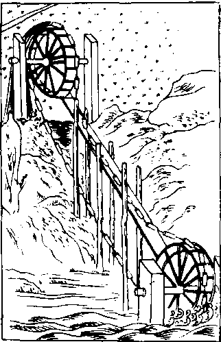 | 释义 | 高转筒车见筒车。 高转筒车cyclo-waterwheel提水工具。两个直径约4尺的大立轮,一个设在岸上,另一装于河边,并使轮下端没在水中。二轮纵立相距约10丈,并套上长索环,索上每隔5寸系一竹筒。以人力或牛曳车,转动上轮使筒索回转,竹筒轮流兜水至上轮处覆水,循环不已。王祯《农书》说:“日所得水,不减平地车戽”;如果田高岸深或田在山上,采用二级提水法,高转筒车“皆可及之”,工效十分显著。