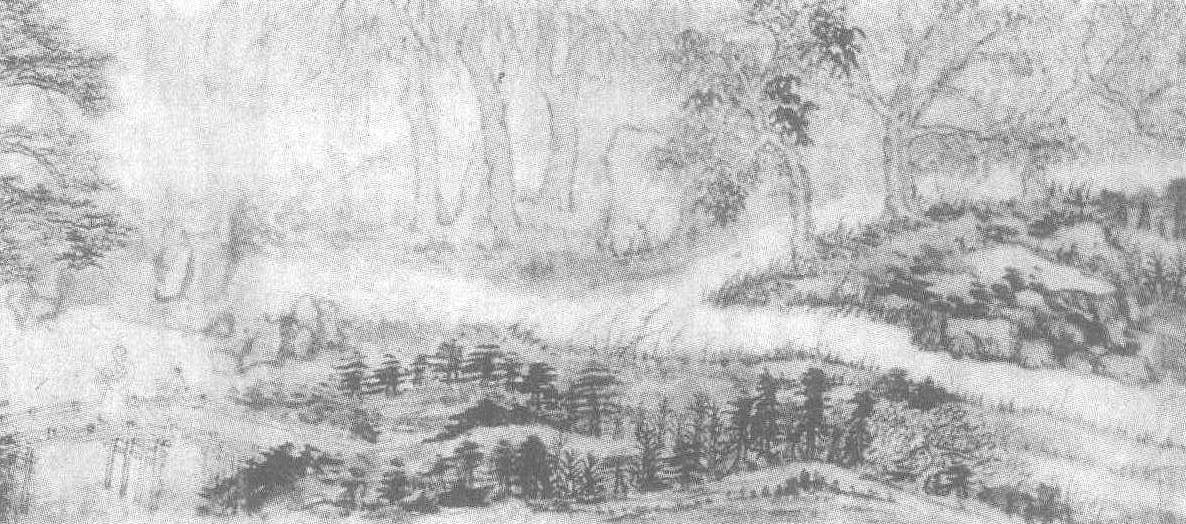| 释义 | 髡残书画卷清。髡残(见《髡残苍翠凌天图轴》条目)绘。纸本设色。纵28.1厘米,横248.3厘米。上海博物馆藏。此为一幅横景式画卷。作者将一段山野的景色一路绘来。图中峰峦连绵俊逸,林木繁茂蓊茸,石阶随山势而行,河水逶迤平缓。红墙绿瓦的寺院掩映在赭石翠树间。古塔为松柏环绕。依水而建的木亭富有特色,一半水中一半岸上。图中有两处人物活动场景。拱形木桥横跨水面,一红衣老者握杖行于桥上,一童子腋下携琴尾随而来。图卷的末尾处绘一泓水湾,一叶扁舟漂浮于水面,渔翁坐在船头垂钓。在这幽深秀美的环境中,人物透出幽雅含蓄、超凡脱俗的气质。整个画卷构图疏密得当,景物层次有序。作者笔格遒劲,干湿并用,意境高妙,浅绛的设色和深浅不同的墨色丰富了画面的层次。图后有自题五言诗一首,款署“浙江学人”。诗起首钤〈浙江〉朱文印,后钤〈释弘仁印〉白文印。