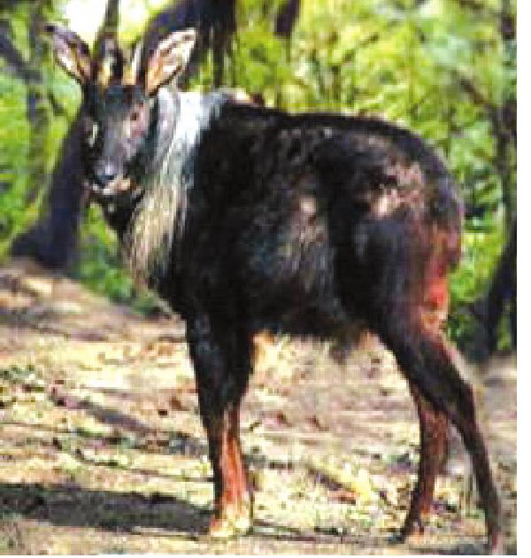 鬣羚 鬣羚别名明鬃羊、苏门羚。哺乳纲偶蹄目牛科鬣羚属。栖于海拔1 000~4 000米的针叶林和针阔混交林或多岩石的杂灌丛地带。常在陡峭和乱石山岩间窜跳奔跑。行动迅速,一般喜独栖生活,也偶有3~5只结成小群的。食物多以植物嫩枝、芽、叶和苔草、小叶女贞等为主。产于天水、陇南、甘南、临夏等地(州、市)的各县。皮可制革,骨可入药。可供科学研究和动物园展览。国家二级保护野生动物。 鬣羚偶蹄目牛科。又名苏门羚,分布于秦岭以南各地山区,现存量数万头,中国国家II级保护动物。体长140~180cm,尾长8~16cm,肩高85~94cm,体重50~140kg。栖息于亚热带森林茂密而多裸岩的山区。冬季发情,妊娠期7个月。次年5~6月产仔,每胎多1仔。1岁半性成熟。饲养寿命超过10年。 鬣羚国内分布于四川、甘肃省和长江以南地区。是一种中型的牛科动物。因最早在印度尼西亚的苏门答腊发现,所以又称苏门羚。体长约1.5米,体重100公斤。栖息于较高的山地林区,常在乱石岩间跳跃,白天在石洞或垂岩下休息,清晨、黄昏外出活动。性孤僻、暴躁、胆怯、机警。主要以树叶为食,也吃果实、菌类和农作物。鬣羚角有清热解毒,平肝熄风之功能,主治痫症、中风、小儿惊风、温热病等;骨有祛风、止痛的功能,主治风湿肢节酸痛、麻木不仁等症;皮可制革,肉味鲜美。又是观赏动物。 |