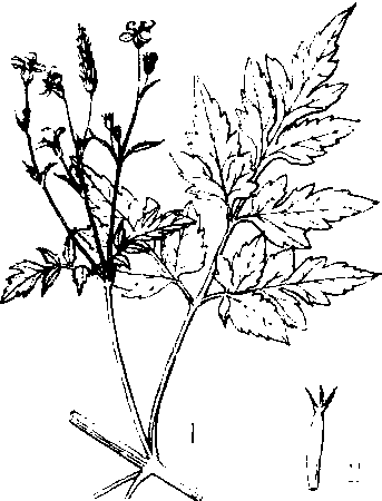 | 释义 | 鬼针草Guizhencao菊科。一年生草本。株高50—100厘米。叶对生,具长柄,二回羽状深裂,小裂片菱状披针形。头状花序,直径6—9毫米;总苞杯形,花托具托片;边花舌状,1—3朵,盘花管状,黄色。瘦果线形,略扁,具3—4棱,长1—2厘米,顶端有3—4枚芒状具倒钩冠毛。分布几遍全国各地。为常见路边杂草。秋季果成熟,常被人和动物携带他处,传播种子,是果实种子借动物传播。 鬼针草spanishneedlesBidens bipinnata L.,又称婆婆针。菊科,鬼针属。一年生草本。为路边、荒野常见杂草。中国各地均有分布,也见于亚、欧、非、大洋各洲。茎直立,多分枝,四棱形。中部和下部叶对生,三出二回羽状复叶;上部叶互生,羽状分裂。头状花序有梗;舌状花黄色,中性,通常1~4朵;盘花管状,黄色,两性。瘦果线形,棱脊延伸成芒刺。花果期9~11月。全草入药,具清热、止泻、解毒之功效;叶捣汁外敷治蛇、虫咬伤。