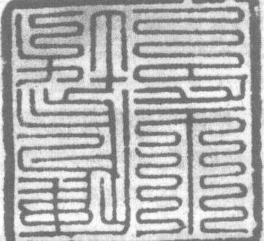 | 释义 | 九叠文印Jiudiewenyin用九叠文镌刻的印章。九叠篆是篆字的别体,笔画折叠、盘曲,根据笔画繁简、印章大小而决定文字的屈曲数字,有四叠、五叠不等。“九”只示为多数而已。九叠文印起于唐代官印,又称“上方大篆”,皆用朱文,此制沿用至明、清两代。九叠文印章多为官印,因其盘曲造作,不为常人所赏识,故私印少有人用。