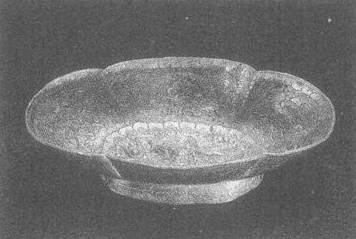 | 释义 | 鱼化龙纹金杯唐。通高3.5厘米,口径13.1厘米、7厘米。重0.17公斤。1983年陕西省西安市太乙路出土。陕西省博物馆藏。此杯呈椭圆形,敞口,浅腹,圈足。杯口作四瓣海棠花式。内底为鱼身龙头的鱼化龙戏珠图案,水波纹外环绕联珠纹及花瓣带饰。杯内壁錾宝相花和如意花纹等,口沿内侧与圈足外侧饰芙蓉花瓣。杯身外壁光素无纹。