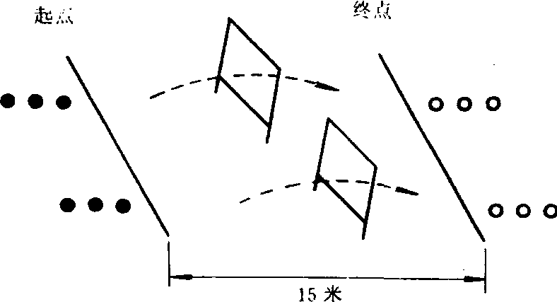 适用于5—6年级。可以发展学生的协调、灵敏素质,提高鱼跃滚翻技术。器材 竹杆2根, 皮筋2条, 垫子2—4块。场地 在操场空地画两条相距15米的平行线, 一条为起点,另一条为终点。在两条平行线之间插两根竹杆,竹杆中间系两根皮筋,皮筋上下间隔1米,接近地面的1根皮筋离地60—80厘米,形成“窗”,“窗”前放垫子若干块。游戏方法 把学生分成人数相等的两组, 以纵队形式站在起点线后。教师发出开始口令后,各组第一名同学起跑到“窗”前,用双脚起跳,做鱼跃前滚翻动作从两根皮筋中间跃过,并迅速站稳。第一名同学做完后站到终点线一侧,后面的同学按上述要求依次进行。教师在学生做动作时; 及时给予评定。