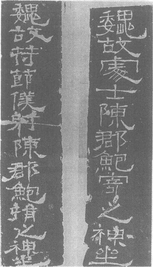 | 释义 | 鲍寄神坐、鲍捐神坐三国·魏。刻石。《鲍寄神坐》纵30.5厘米,横7.8厘米。《鲍捐神坐》纵34.5厘米,横7.8厘米。1926年两石同出土于河南省洛阳杨坟村。北京故宫博物院藏。三国魏时有禁立碑之令,人们即以神座作为祖宗牌位,埋于墓中,后逐渐演变成墓志形式。《鲍寄神坐》:“魏故处士陈郡鲍寄之神坐”一行,11字。《鲍捐神坐》:“魏故符节仆射陈郡鲍捐之神坐”一行,13字。《鲍寄神坐》比《鲍捐神坐》字略大,但书风相近,似同出一人之手。两隶书字体变化丰富,或大或小、或横方或纵长,点画转折粗细自然。北京故宫博物院还有近人马衡所藏二石拓本。罗振玉《芒洛冢墓遗文四编补遗》有著录。