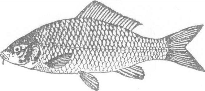 图262 鲤 鲤Cyprinus carpio鱼纲,鲤科。体延长,稍侧扁,长达1米左右。体青黄色,尾鳍下叶红色。口下端,须两对。背鳍、臀鳍均具硬刺,最后一刺的后缘具锯齿。栖息于水的底层,杂食性。中国除西部高原外,各地淡水中都产。生长快,生活适应力强,能耐高温和肥水,是一种重要的养殖鱼类。 鲤carpCyprinus carpio L.,硬骨鱼纲,鲤形目,鲤科。长达1 m左右。体延长,侧扁,腹部圆,无腹棱。头中大。吻钝。眼上侧位。口小,亚前位,马蹄形。须2对。背鳍、臀鳍均具硬刺,最后硬刺的后缘具锯齿。体青黄色,尾鳍下叶红色。栖息于水的底层,杂食性。中国除西部高原外,各地淡水中均产。生长迅速,生活力强,能耐高温和污水,为重要淡水养殖鱼类。中国养鲤已有2 400余年历史,现世界各地都有养殖。饲养品种颇多,常见有“镜鲤”,皮肤光滑,仅侧线部和背、腹部有少数大型鳞片;“革鲤”,皮肤墨绿色,无鳞。