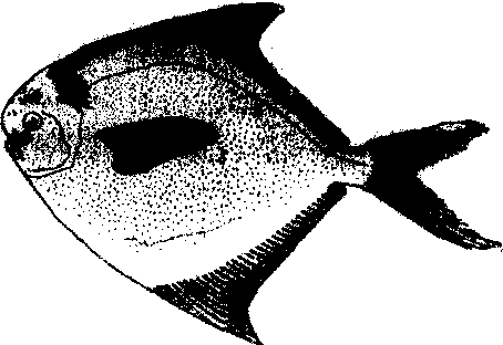 图277 鲳 鲳butterfishes,fiatolas又称车扁鱼。硬骨鱼纲,鲈形目,鲳科,鲳属(Pampus)鱼类的通称。为近海洄游性中上层鱼类。分布于印度洋北部沿岸、西太平洋浅海,也见于西非沿岸,中国沿海均产。常见有银鲳(P.argenteus)、灰鲳(P.cinereus)和中国鲳(P.chinensis)。长约35~45 cm。体卵圆形,侧扁,尾柄短。头小,吻短钝。口小,前位。食道有一侧囊,囊内具乳头状突起,密具小棘。背鳍1个,基部长,镰刀状。臀鳍与背鳍同形,相对。无腹鳍。尾鳍分叉。银灰色。喜在阴影中集群,冬季栖息较深海区越冬,春、夏游向内海产卵。主食水母、底栖甲壳类和小鱼。为名贵食用经济鱼类,肉味鲜美。 |