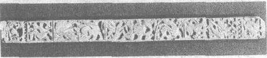 | 释义 | 鸟兽纹铜尺东汉。长23.39厘米,宽2厘米,厚0.4厘米。1959年湖南省长沙北郊刘家冲2号东汉墓出土。湖南省博物馆藏。此尺用铜铸成,略有剥蚀,正、背面均分十寸,每寸内铸有猿猴、山鸡、水牛、野兔等各种形态各异的禽兽。一端有一穿孔,另一端角残。湖南省博物馆还存有一件与此铜尺形制、纹饰相类似的铜尺,于1957年湖南省长沙小林子冲工地东汉墓出土。