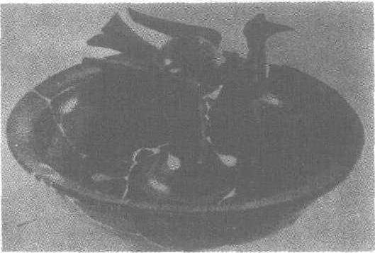 | 释义 | 鸟柱黑陶盆战国。高23厘米,径34厘米。河北省平山县中山王墓出土。盆宽沿,浅腹,圜底。盆中立一竹节状圆形柱。柱顶塑一鸟,尖喙,突目,引颈,似展翅欲飞。鸟身饰波折纹,纹饰极为光亮。这种黑色磨光暗花器是战国时期的陶器新品种,它受铜器错金银和漆器制作的启发,力图达到同等效果。光亮的花纹是采用压磨工艺所致,经过压磨的部分颗粒组织有顺序地紧密排列,光线照射下出现集中反射的熠熠闪光。