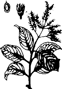 | 释义 | 鸡尖鸡尖又称海南榄仁树、鸡珍,亦叫鸡针木,属使君子科落叶乔木,高20—25米,胸径40—50厘米,树冠广伞形,树皮厚且具斑点,灰黄色,有浅纵裂纹; 小枝柔软,棕褐色; 单叶近对生,薄革质,卵形,全缘; 花两性、白色、芳香,圆锥花序顶生或腋生;果为假核果,椭圆形,具三棱状革质翅,种子一粒,种壳木质且硬。 鸡尖Hainan terminaliaTcrminalia hainanensis Exell.,又称海南榄仁树。使君子科,榄仁树属。乔木,高达15m。嫩枝及树干基部常有刺。叶卵形或椭圆形,长4~11cm,叶基部边缘有2腺体。圆锥花序;花两性,白色;花萼4裂,无花瓣;雄蕊8;子房下位。果椭圆形或倒卵形,具3翅,连翅长2~2.5 cm。分布于海南省,生于低海拔落叶季雨林中。喜光,适应高温干旱、瘠薄的环境。萌芽性强。木材坚重,耐海水浸渍,适于造船、机械器具、车辆、家具等用。