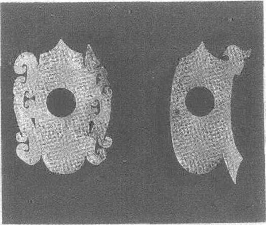 | 释义 | 鸡心玉佩(2件)西汉中期。一件长4.6厘米,宽3.3厘米,厚0.4厘米;一件长4.5厘米,宽2厘米,厚0.35厘米。1975年湖南省长沙市咸家湖曹𡢀墓出土。湖南省长沙市文物工作队藏。玉料为青玉,两件均呈心形中有圆孔。其中一件两侧透雕变形鸟纹,位置对称,但姿态各异。玉佩上饰阴线流云纹,其形制和纹饰与江苏省铜山县小龟山西汉墓葬的鸡心佩相同。另一件一侧有一小孔,另一侧饰凤鸟,佩上亦饰阴线流云纹。鸡心佩可能是从商代至战国时期使用的玉牒演变而来,首见于汉代,魏晋时仍有所见。原考古发掘报告将它称为玉玦似欠妥当。