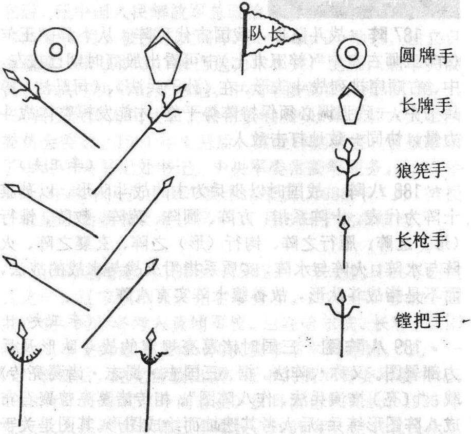 | 释义 | 202 鸳鸯阵明戚家军的纵队战斗队形。戚继光为战胜具有优势火器装备、又长于短兵肉搏、各自为战的倭寇。在既要便于发扬火力,又能减少伤亡的“小而疏散”原则的要求下,以及南方“地多薮泽”,不似北方可“方列并驱”的地理条件下,创用了一种仅有12人编成的鸳鸯阵。《纪效新书》规定:以纵队进攻时,兵士双双并列向前。近似欧洲十九世纪火器时代的“散兵线”和“散兵行”,成为攻守兼备的最先进的阵式。体现了戚继光齐力胜敌的军事思想。