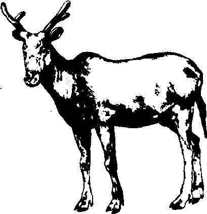 图458 麋鹿 麋鹿david's deerElaphurus davidianus Milne-Ed-wards,又称四不像。茸用鹿的一种。鹿科麋鹿属中的一个种。麋鹿尾似驴非驴,蹄似牛非牛,颈似驼非驼,角似鹿非鹿。体型较大。头较长。耳较短。躯体也较长。蹄宽大。尾细而长,末端生有丛毛。公鹿长角,角无眉枝,且分权异常,在鹿类中独有。夏秋之际发情交配,妊娠期约280天,每胎一仔。寿命可达25年。原产中国的华北和华东平原地区。野生麋鹿在秦汉时代仅有一个种群养于猎苑里。在清代,又被英、法、德、比等国外交官、传教士明索暗购,运往欧美,分别养在英、美各动物园里,从此麋鹿在中国绝种。直至1956年,陆续从英国麋鹿群中提出数十只运回中国繁殖,至1995年,已繁殖近500只。
